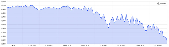 В начале месяца курс превышал 12 400 сумов, однако уже во второй половине сентября сум резко усилил позиции, подорожав почти на 359 сумов за две недели. В последний торговый день доллар впервые с августа 2023 года опустился ниже 12 100 сумов.